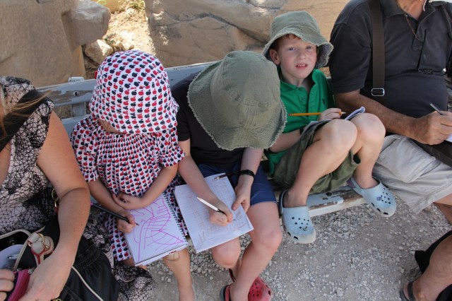 The Acropolis truly is amazing and no trip to Athens is complete without a visit. There are about a dozen historically significant buildings up there, most of which were built around 500BC.  Bec had the children each sketching the famous Parthenon in their journals and I have to say I was impressed with their efforts.  Some of my father’s genes did get through.