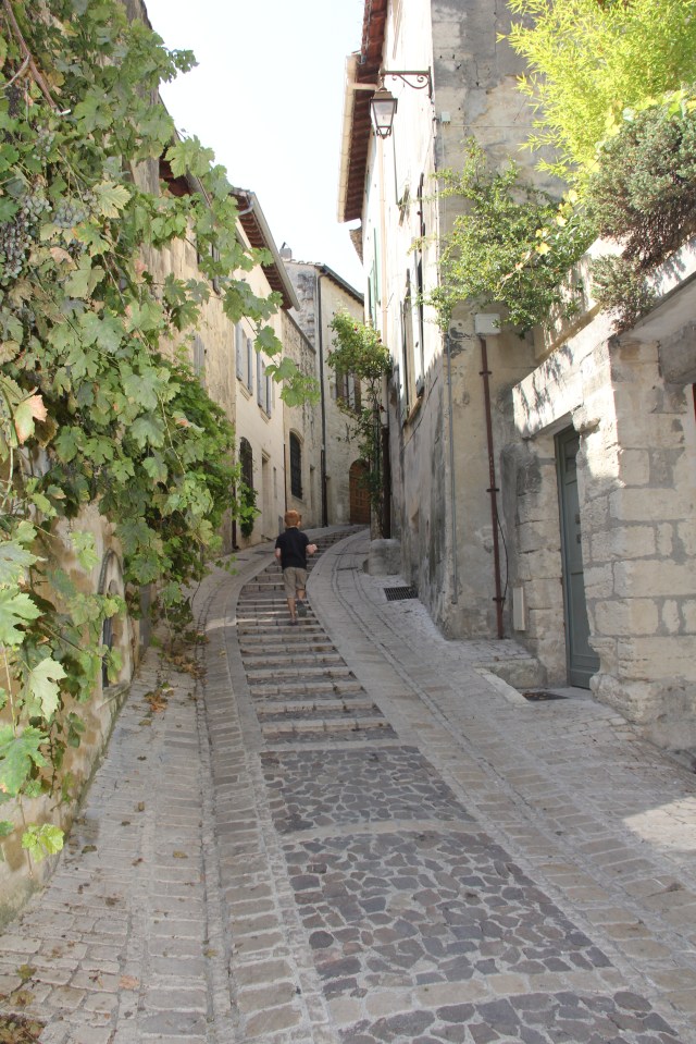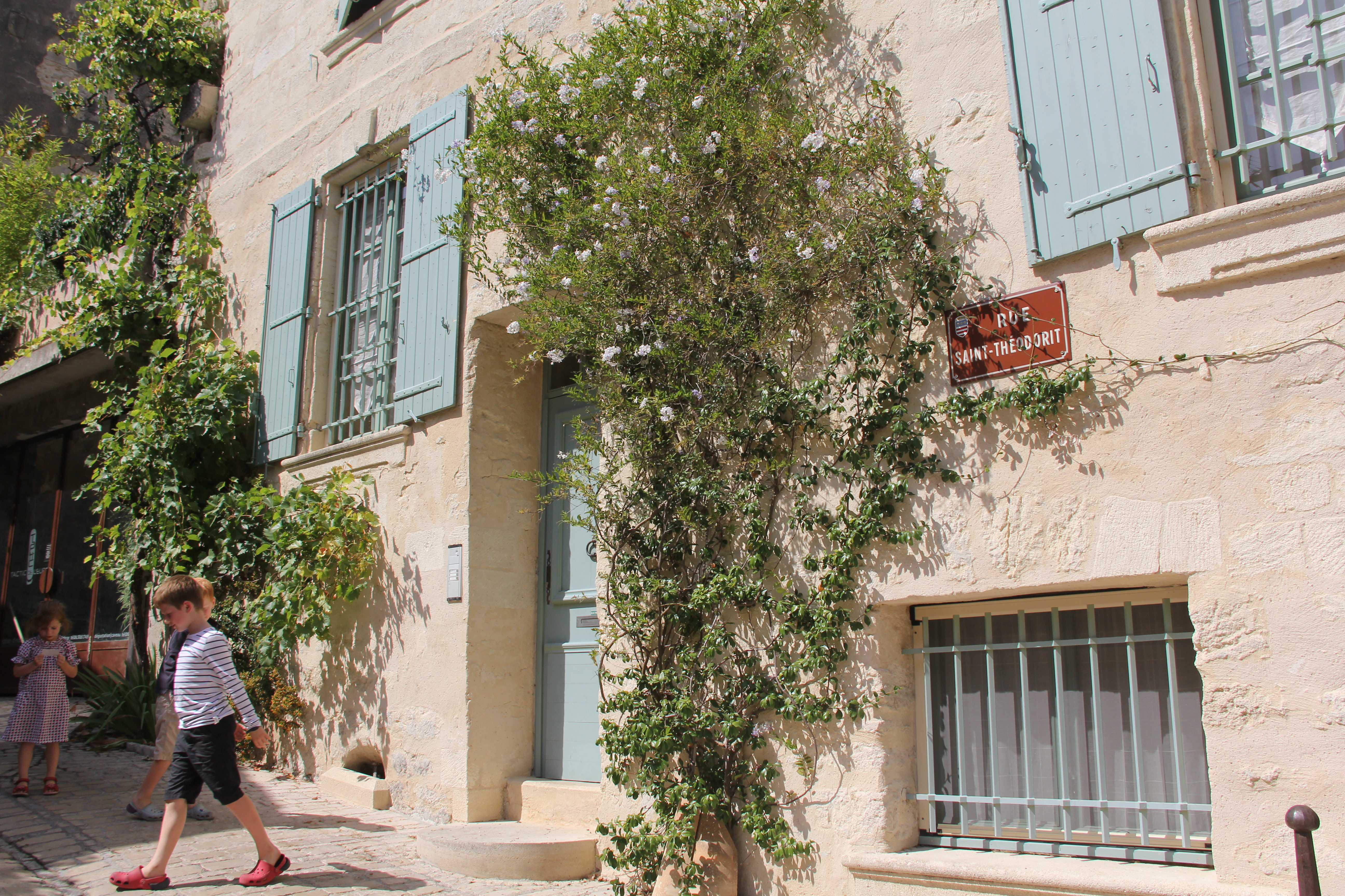 Cobbled streets, sandstone buildings with pale aqua and green wooden shutters, jasmin, grape vines and ivy mimicing archways, blue and white enamel house numbers and several old and loved Citroens working their way around the town.