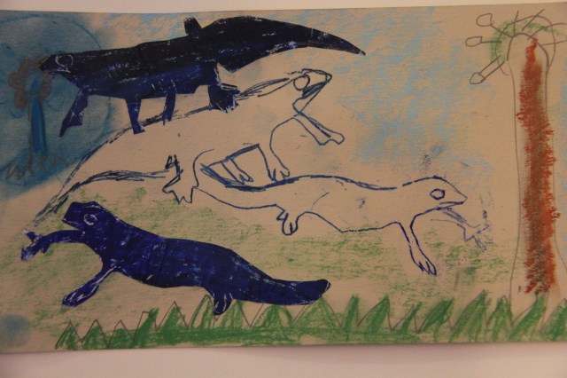 We had intended for the two hour lesson to be just for Foster and Mylo, but Sari recognised a good thing and insisted she too have the opportunity to express herself with some paper, paint, scissors and glue.  We were very impressed with their end work, which also serve as fantastic reminders of our time in Uzes.