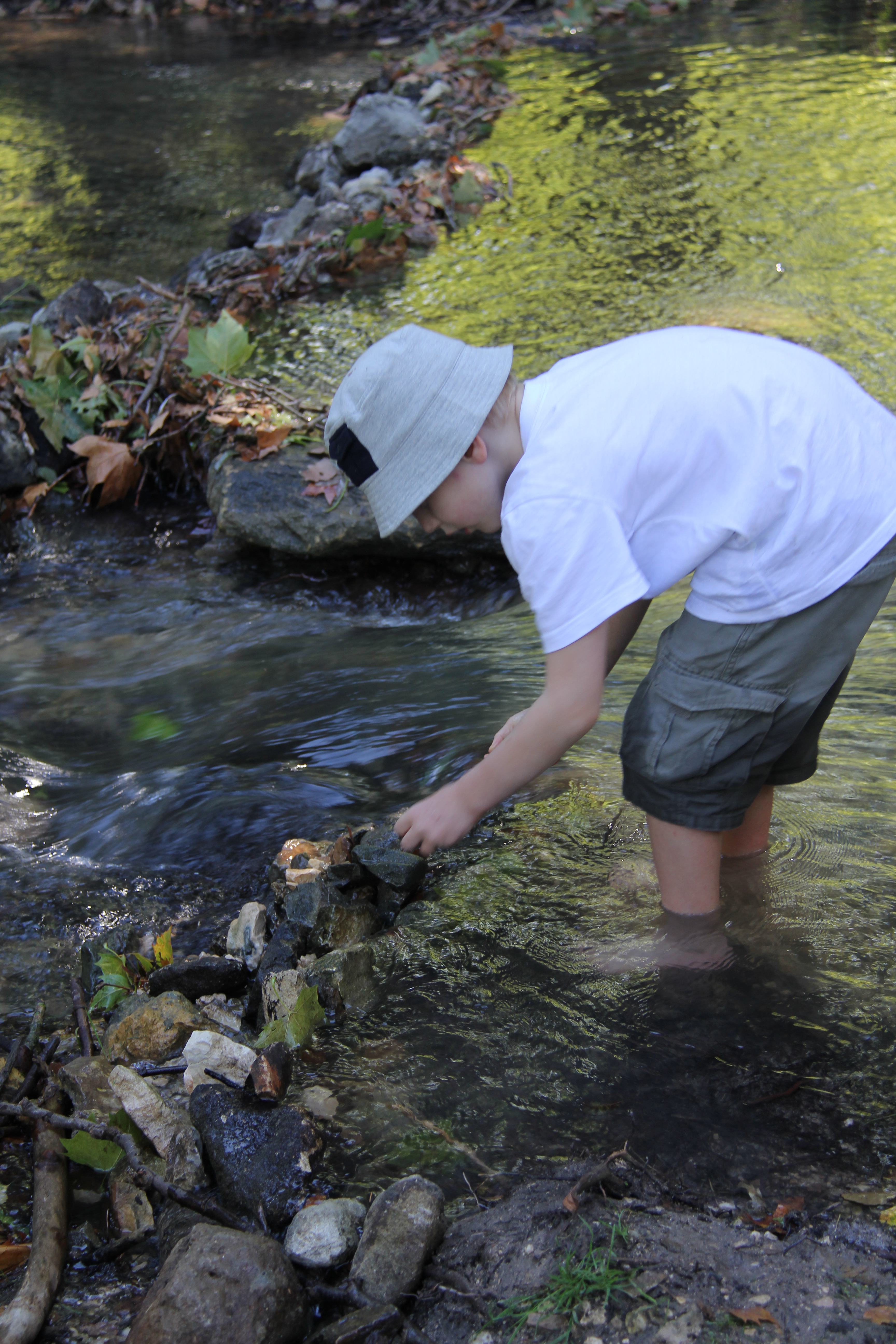 The sticks were put aside as the idea of a dam or ‘le barage’ came to mind. Very quickly the three boys had managed to erect an incredibly effective barricade. It was so nice to watch the boys working together to carry out their plans. Give a boy 30cms of water, a good supply of rocks and he’ll be busy for hours.
