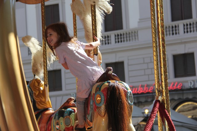 Yesterday we finished up five lovely days in Florence. It gave us a very different take on the Florence we saw on our day trip from Belforte a few weeks back. This time around we explored the city at our leisure with a focus on family, fun and food. We walked in a different direction each day (the children on their scooters) and just followed our noses really – window shopped, enjoyed the buskers, rode the carousel, eat gelato, talked to the locals and took up all their suggestions on things to do and places to eat. We also had a lucky break with our accommodation in that we were moved from the hotel we had booked online to a nearby apartment they had recently acquired which was literally one block from the Duomo. The apartment had two large bedrooms, a living room, kitchen and 2 bathrooms. Perfect for a family of five!