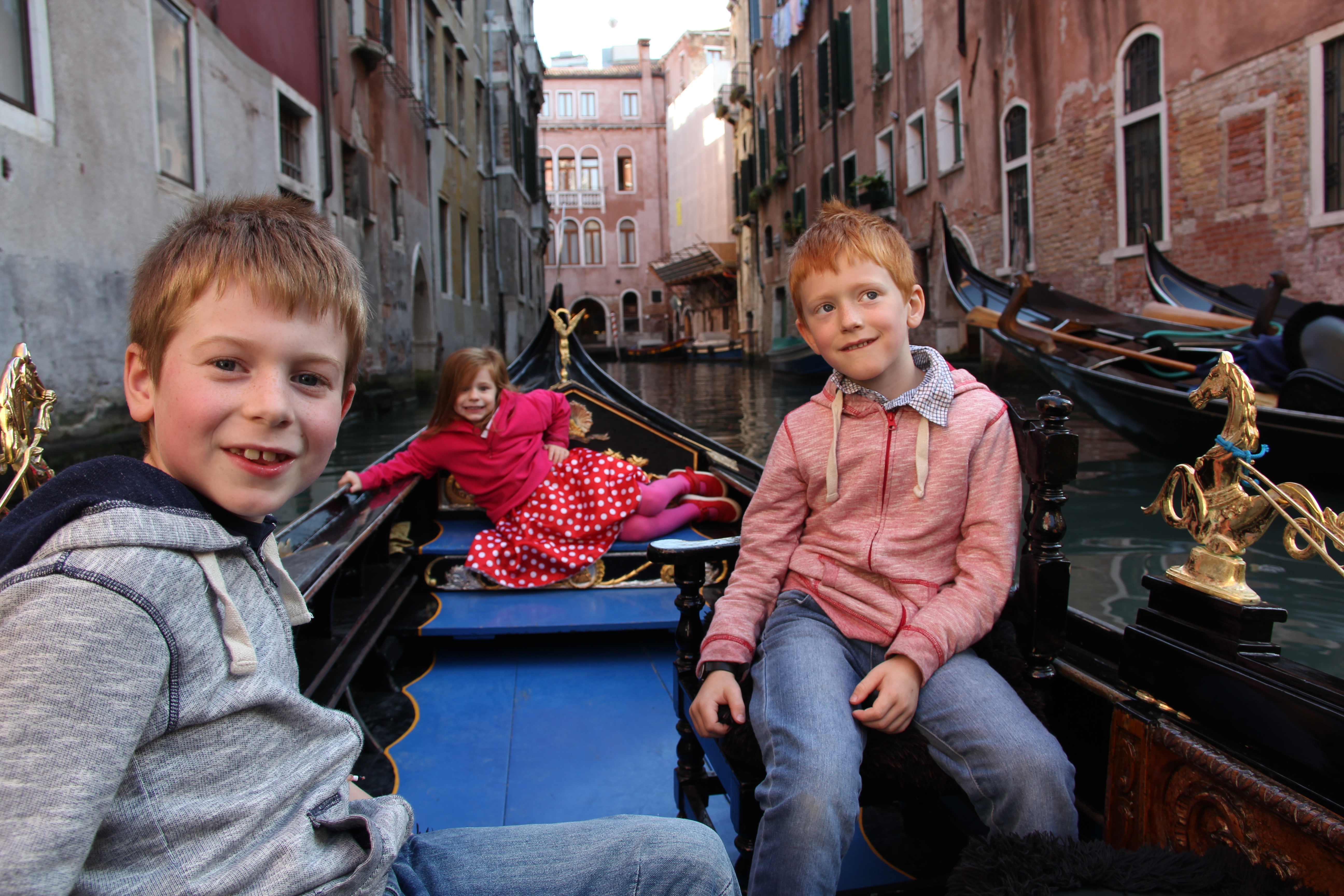 We DID race to the canal which ran alongside our hotel every time we came or went, to see if the tide was in or out. The children were fascinated with the concept of Venice sinking into the sea and took each high tide to be a sign that this beautiful city’s end was near. Six hours later it was again saved, much to their amazement. I started trying to explain tides, the influence of the moon, the way the lagoon and the Adriatic Sea interact – and then I stopped. They will come to understand all that later on, and for the time being why ruin their fun and excitement.